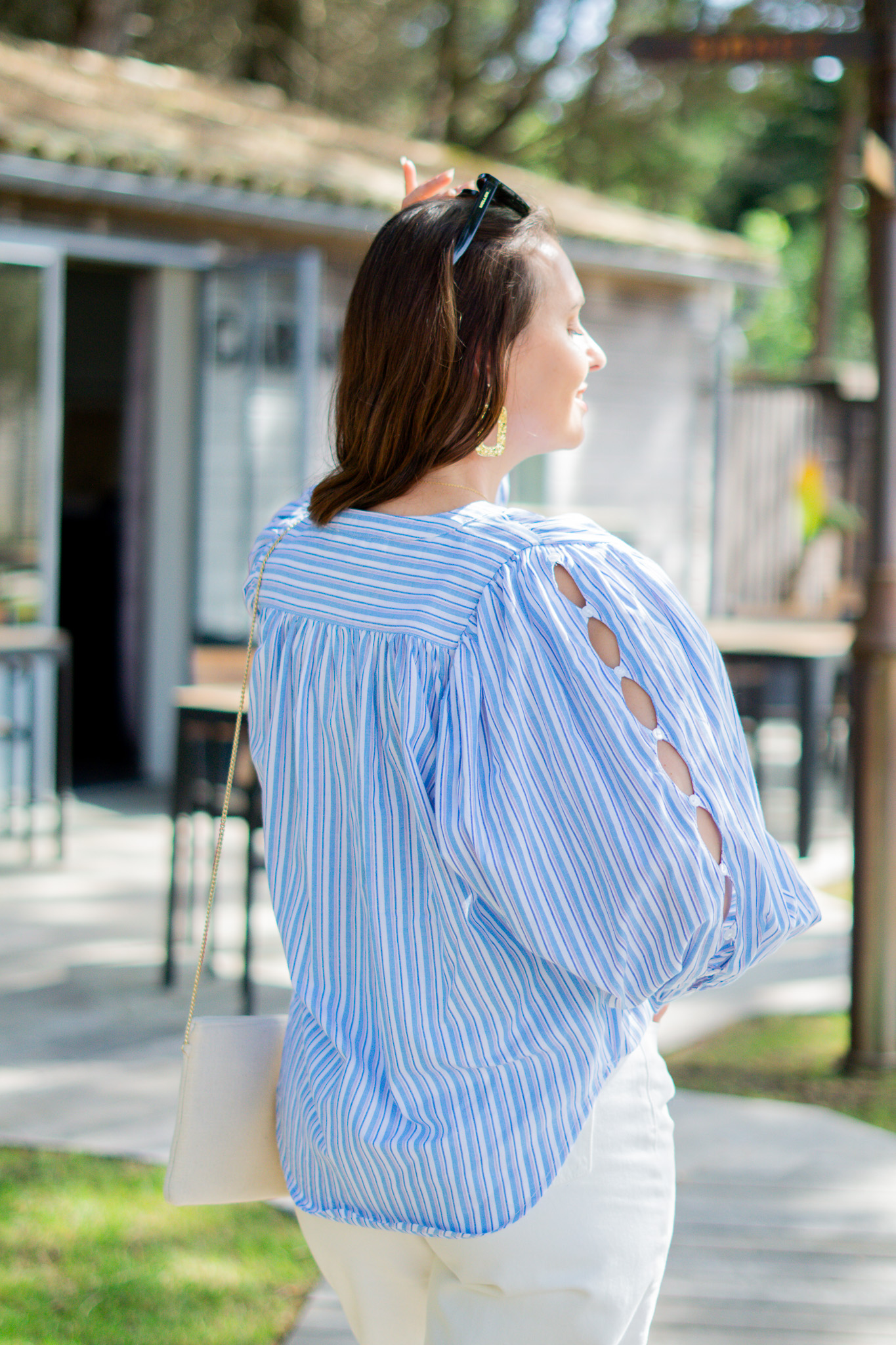 - Manches bouffantes ajourées le long du bras