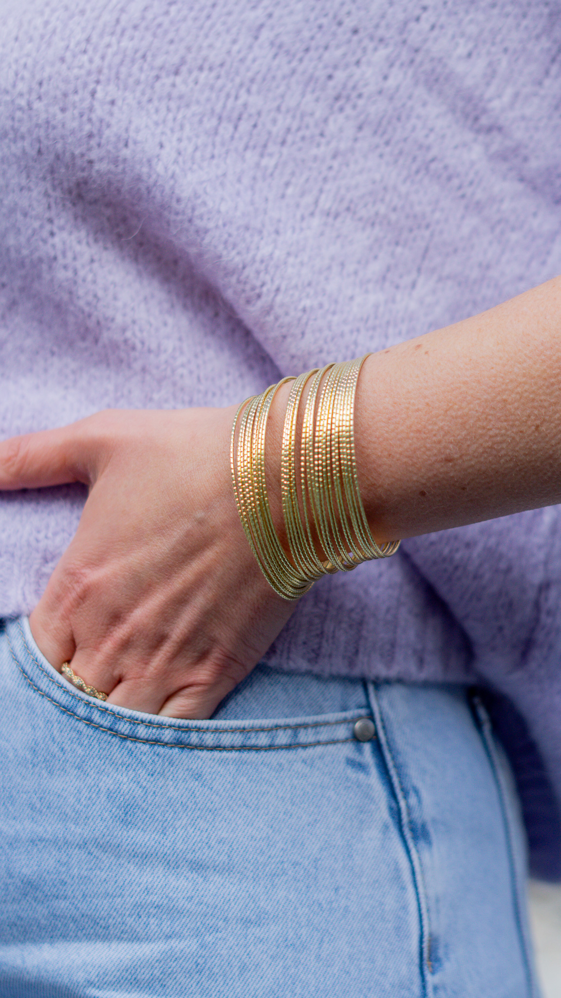 Minimaliste et raffiné, le bracelet Bangle Doré habille votre poignet avec élégance. Sa manchette en laiton doré joue avec des multi-joncs fins pour une touche délicate et lumineuse. À porter seul pour un effet chic ou avec d’autres bracelets pour un style affirmé !