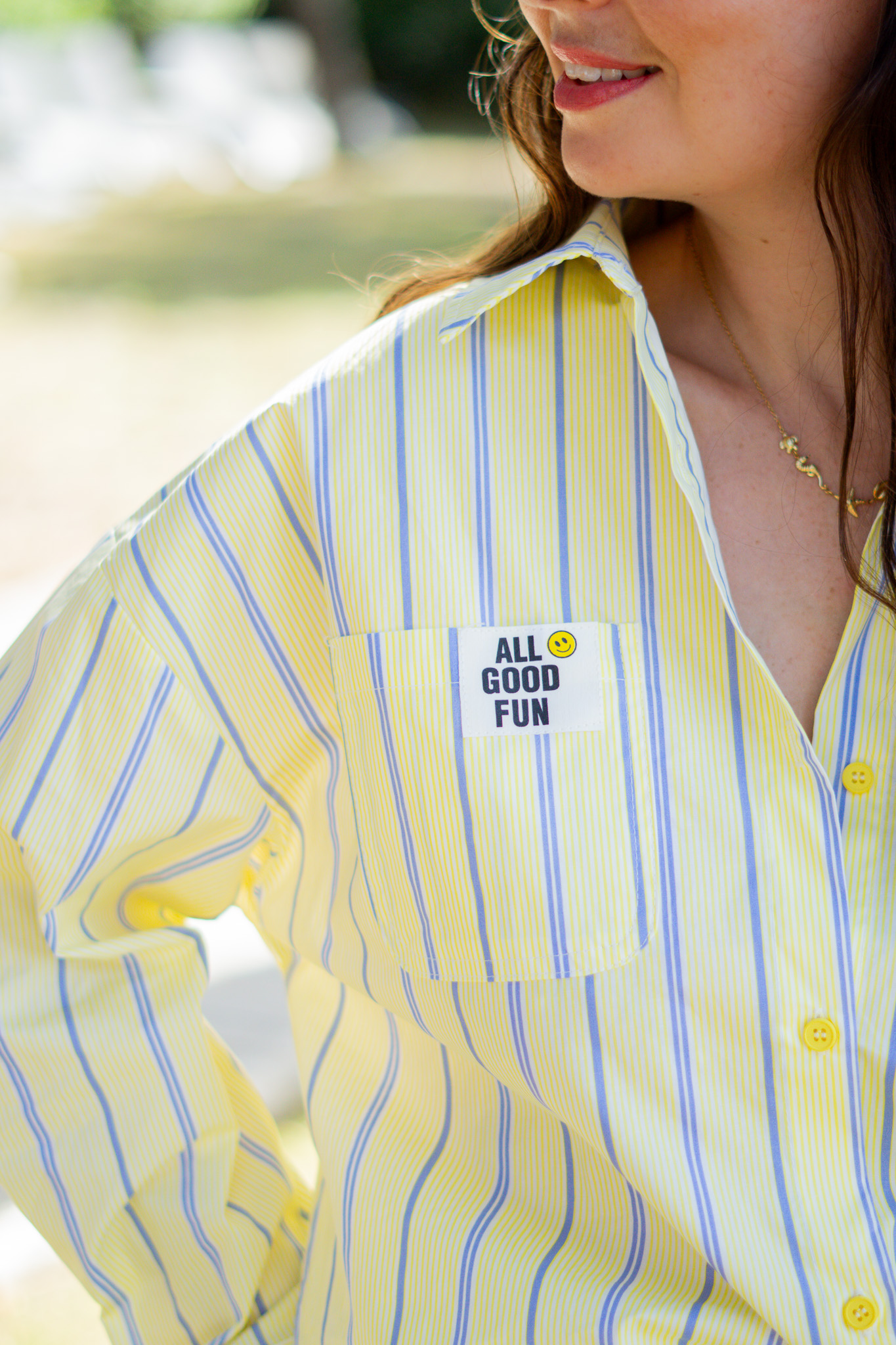 - Etiquette avec inscription sur la poche: All Good Fun