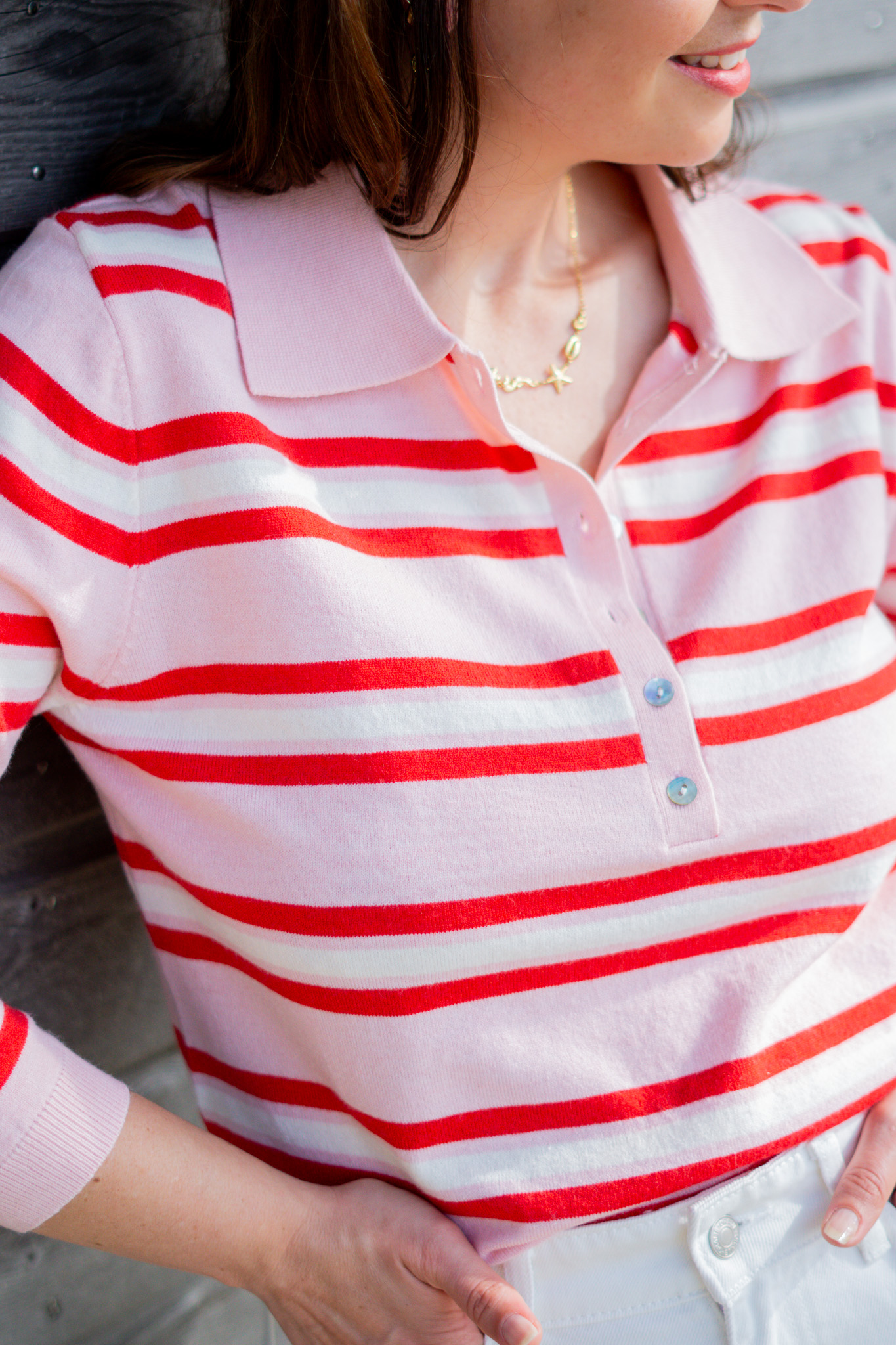 La grande tendance du moment, le polo ! Dans une maille toute douce et des rayures rose et rouge, il donnera du peps à vos tenues et réveillera votre teint  !