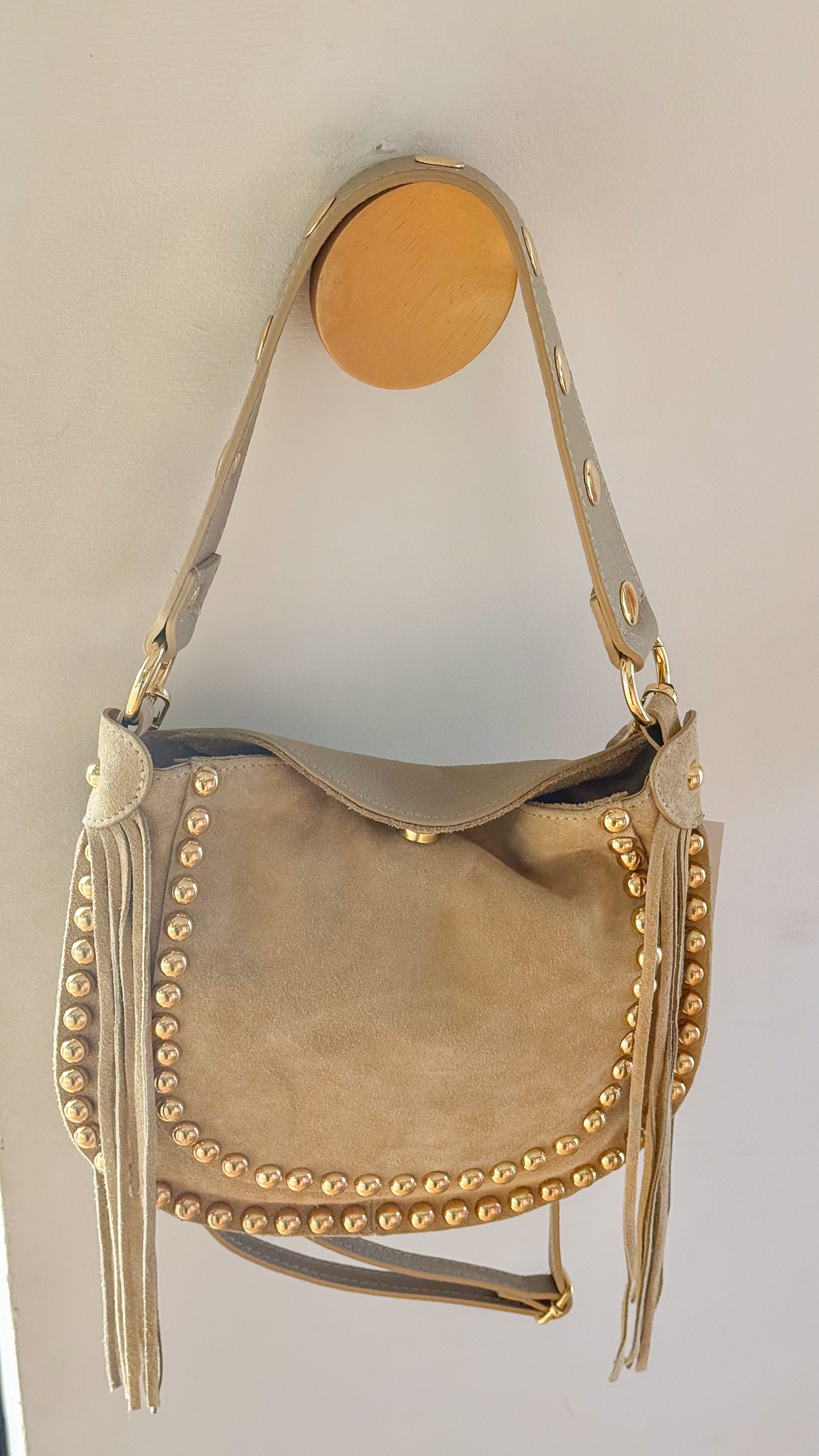 • Anse large avec clous dorés pour un porté épaule,