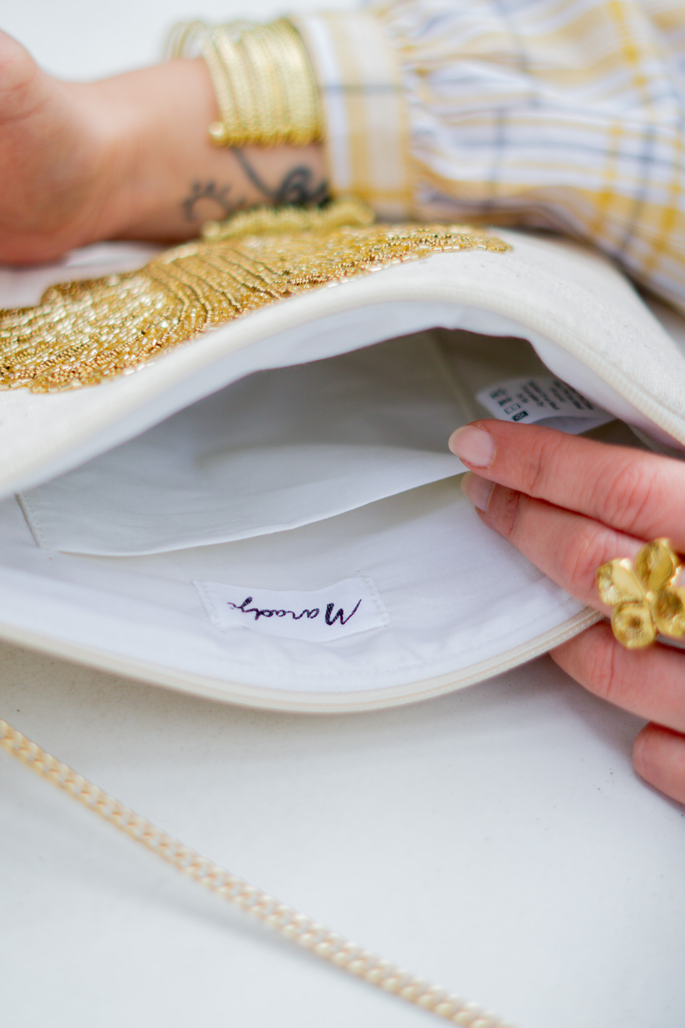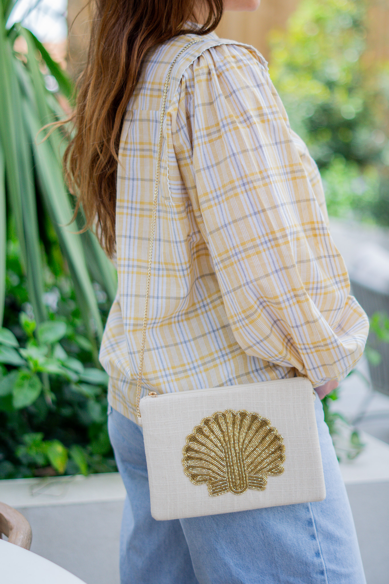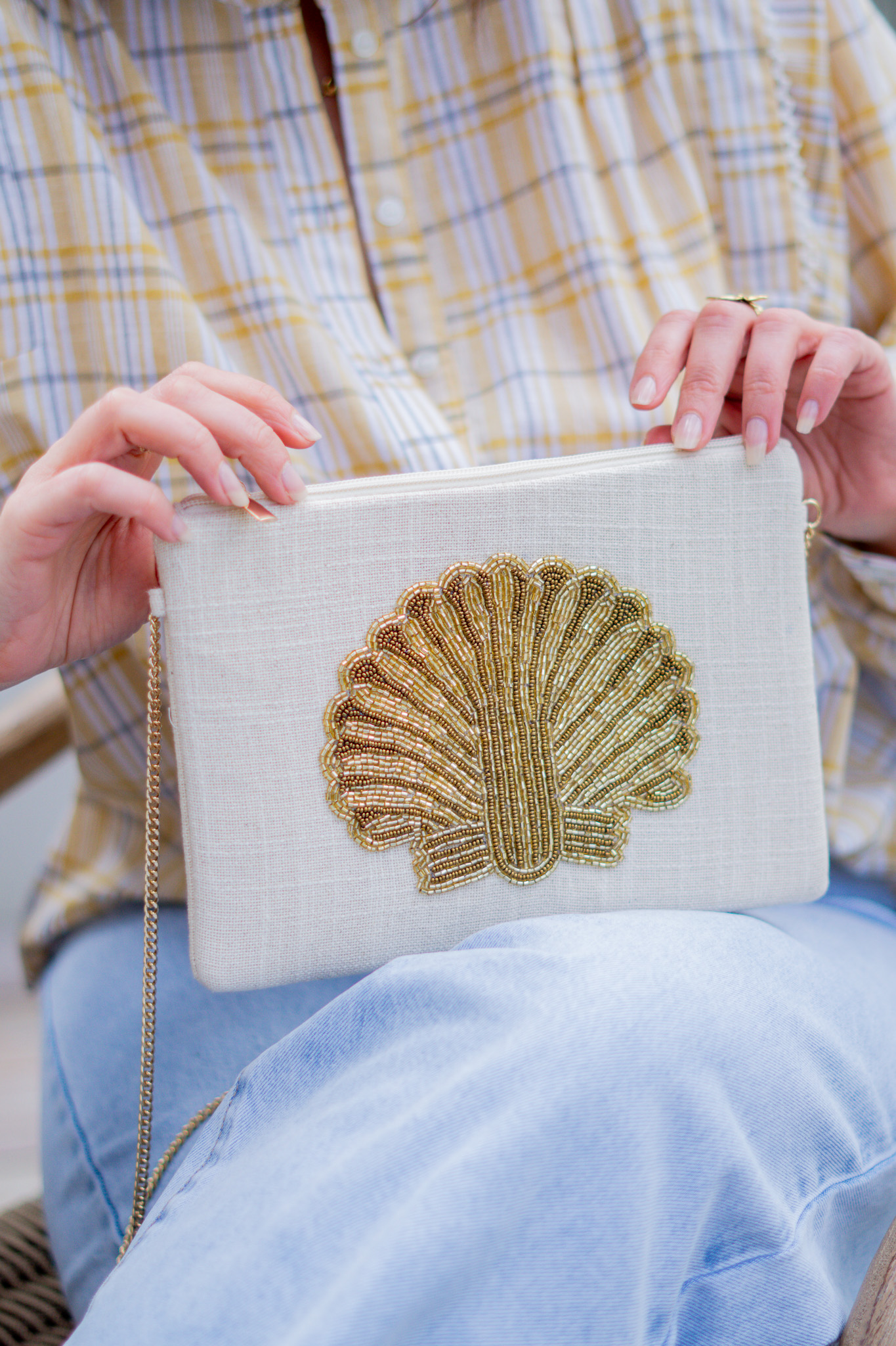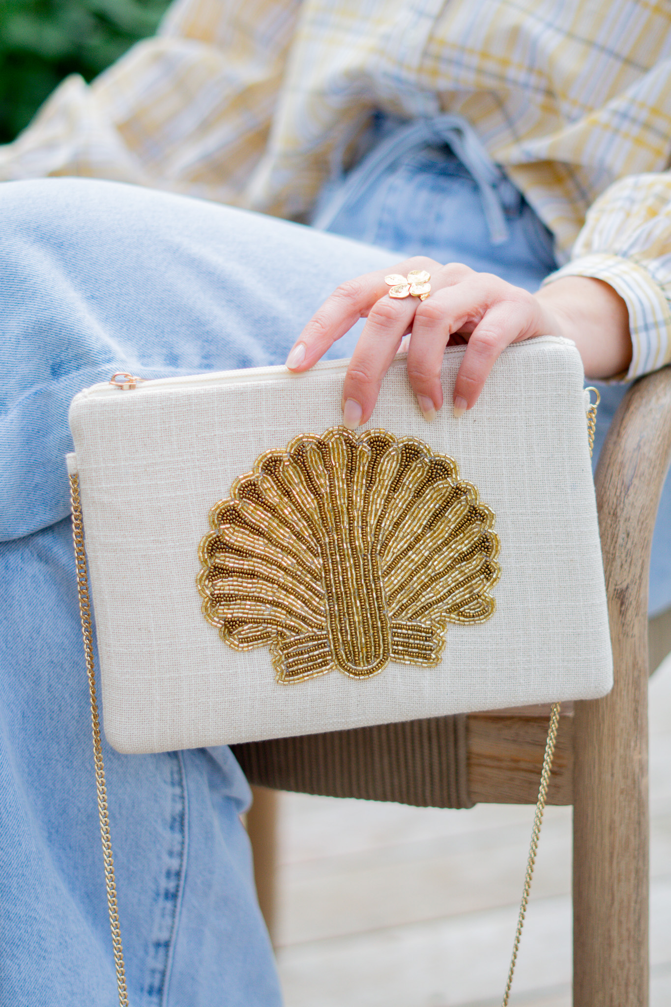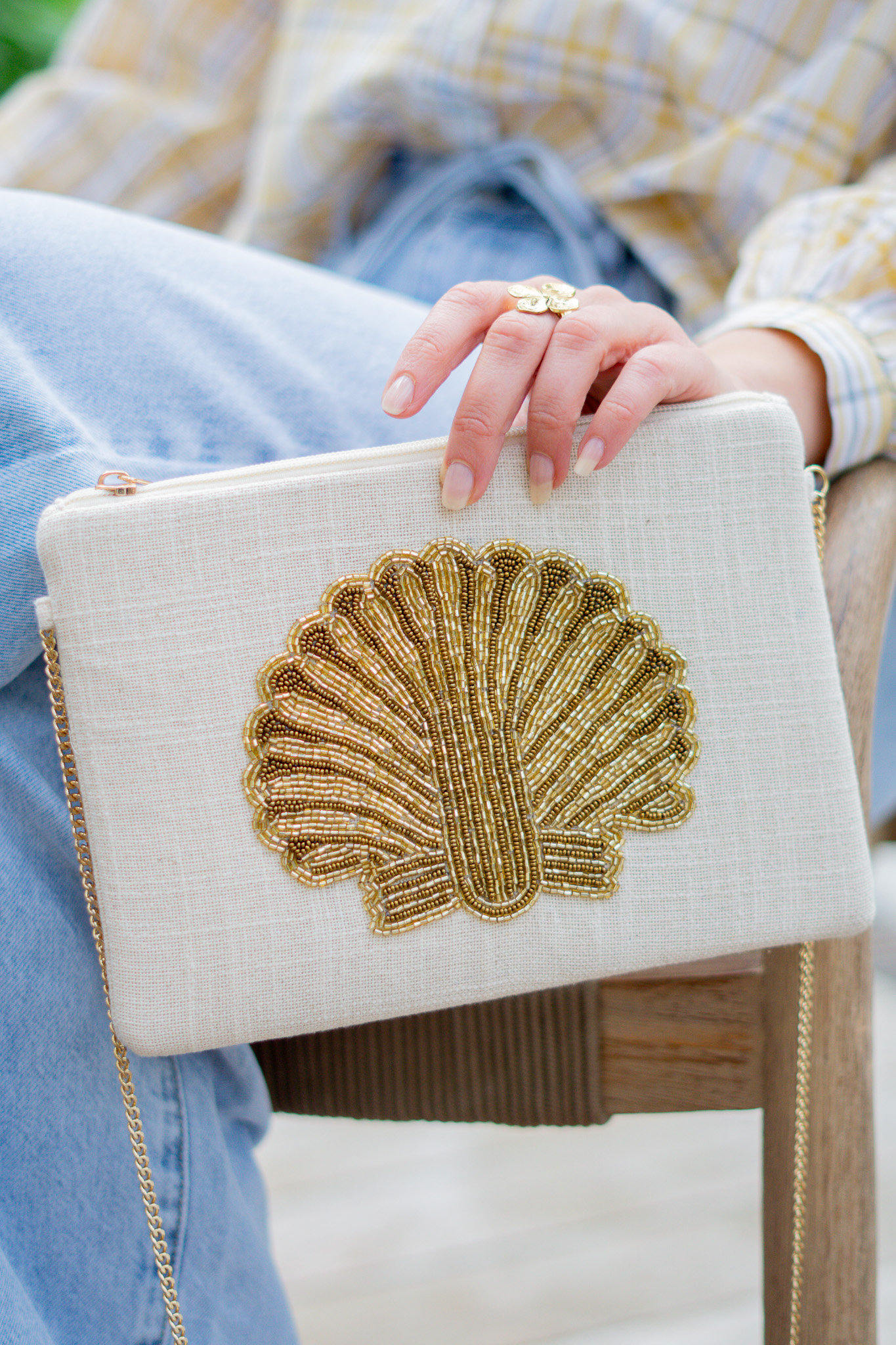 Cette pochette est brodée à la main de perles délicates représentant coquillages, crustacés et merveilles marines. À la fois précieuse et pleine de fantaisie, elle se glisse dans un sac, s’utilise en trousse ou se porte à la main pour illuminer une tenue estivale. Des pièces uniques, inspirées des fonds marins et des souvenirs de plage, à collectionner ou à offrir. Un clin d’œil chic aux vacances, à emporter partout.