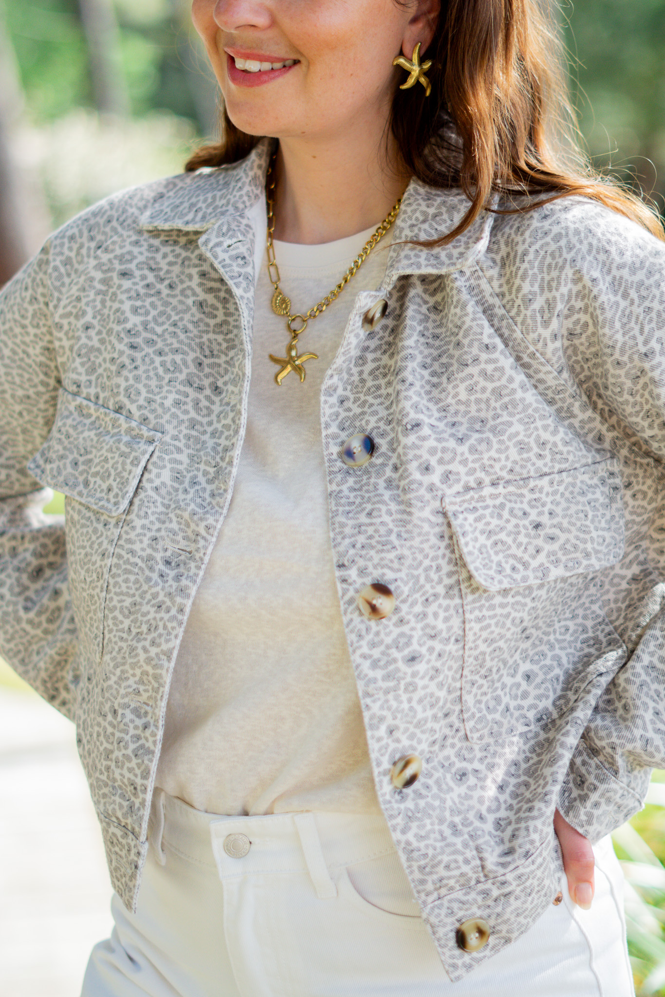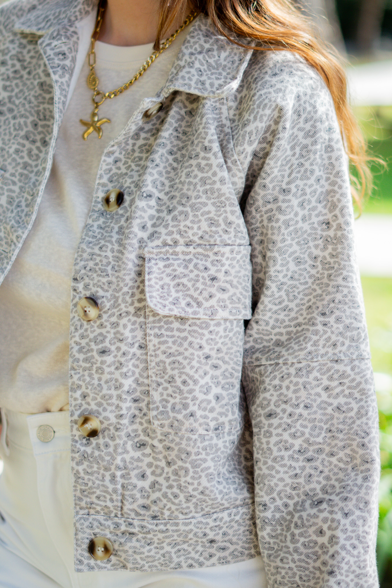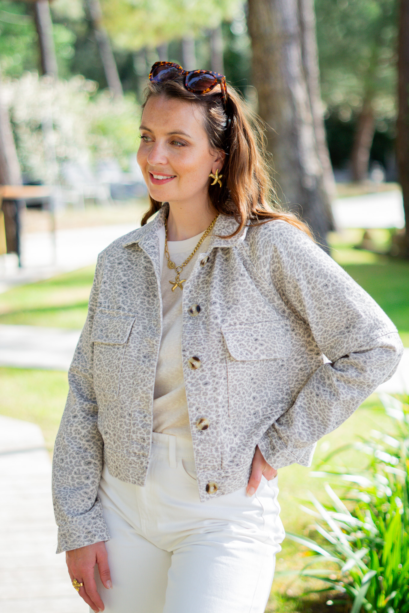 La veste qui donne su style ! Avec un motif léopard dans une teinte douce, parfait pour les beaux!